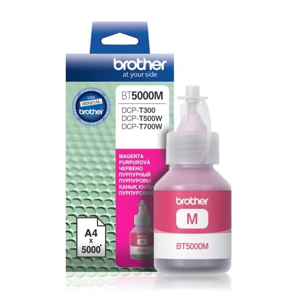 The Brother BT5000M is a genuine magenta ink bottle designed for Brother InkTank printers, offering a high-yield capacity of approximately 5,000 pages based on industry standards. It features pigment-based ink for vibrant, durable, and cost-effective color printing, with a user-friendly, spill-resistant bottle design.