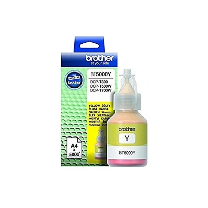The Brother BT5000Y is a genuine yellow ink bottle designed for Brother Ink Tank printers, offering an approximate yield of up to 5,000 pages. It is formulated for high-volume, cost-effective printing with vivid fade-resistant color. It ensures your Brother printer will continually provide superior image quality and accurately reproduce beautiful, vibrant, radiant prints every time without requiring time-consuming attention and maintenance or costly continuous replacement.